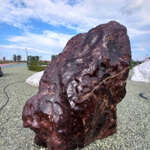 Первые валуны весом от одной до десяти тонн компания передала в дар «Притяжению» в 2023 году. В сентябре нынешнего года эта коллекция стала богаче и весомее – буквально на 22 тонны. Из Сатки в Магнитку прибыли три новых исполина: 15-тонный яшмовый диабаз, 5-тонная яшма и двухтонный доломит.