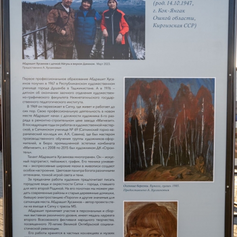 Любовь к Сатке и её жителям нитью пронизывает и творчество Леонида Толкачёва, Абдрашита Хусаинова, Ивана Грецова, Валерия Уланова, Александра Суханова. Их работы, словно яркие лоскутки единой мозаики. Каждое произведение – это отдельный взгляд, отдельное чувство, но вместе они создают цельную, глубокую картину, наполненную теплом и искренностью.