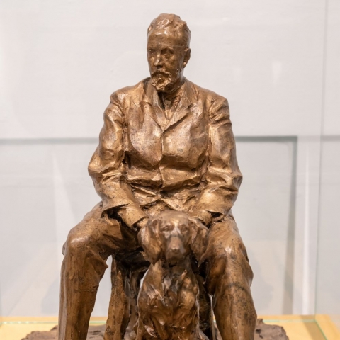 А произведение Павла Трубецкого «Сергей Юльевич Витте с сеттером», выполненное из бронзы, позволяет увидеть графа, министра финансов и председателя Совета министров Российской империи в необычном образе. Скульптор изображает его в расслабленной, повседневной обстановке, сидящим в непринуждённой позе, что было ново для портретов того времени.