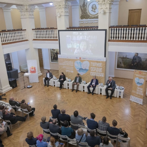 Кстати, участникам конференции «Горное сердце Евразии» была представлена ещё одна выставка - живописи и графики художника Владимира Бубнова. Экспозицию «Как хорошо мы плохо жили, или назад в СССР», которую можно было увидеть на протяжении двух дней, специально для конференции подготовили представители галереи уральских художников «Потоки» (Челябинск). А перед началом пленарного заседания все желающие посетили экспозицию Русского музея «Лапа на счастье» - часть проекта «Жизнь замечательных собак».